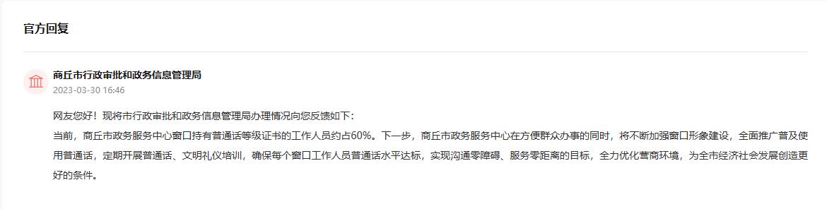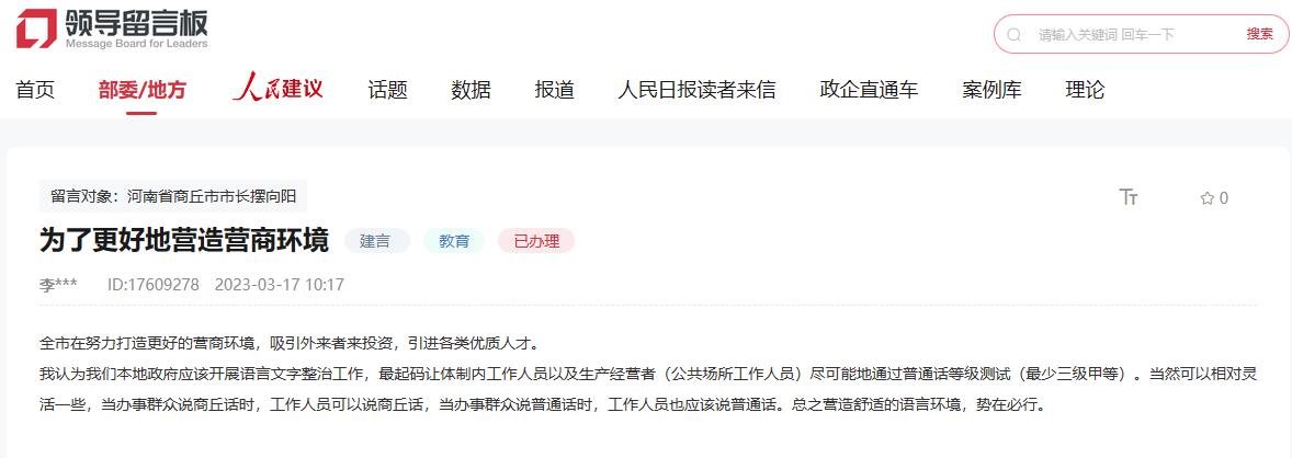 人民建议| 网民建议窗口单位推广普通话优化营商环境 商丘:全面推广