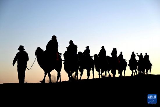 10月1日,游客在甘肃省敦煌市鸣沙山月牙泉景区游览。