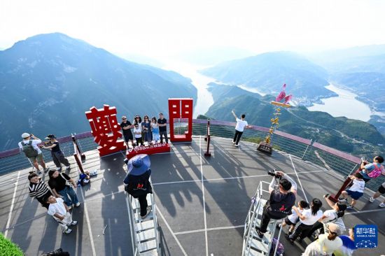 10月5日,游客在重庆奉节三峡之巅景区游览。