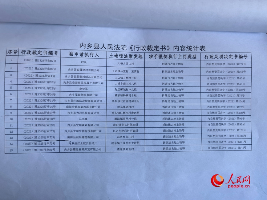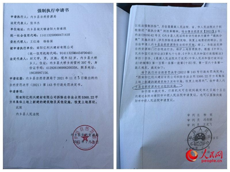 内乡县自然资源局于2022年向内乡县法院提交了强制执行申请书。人民网记者 宋芳鑫摄