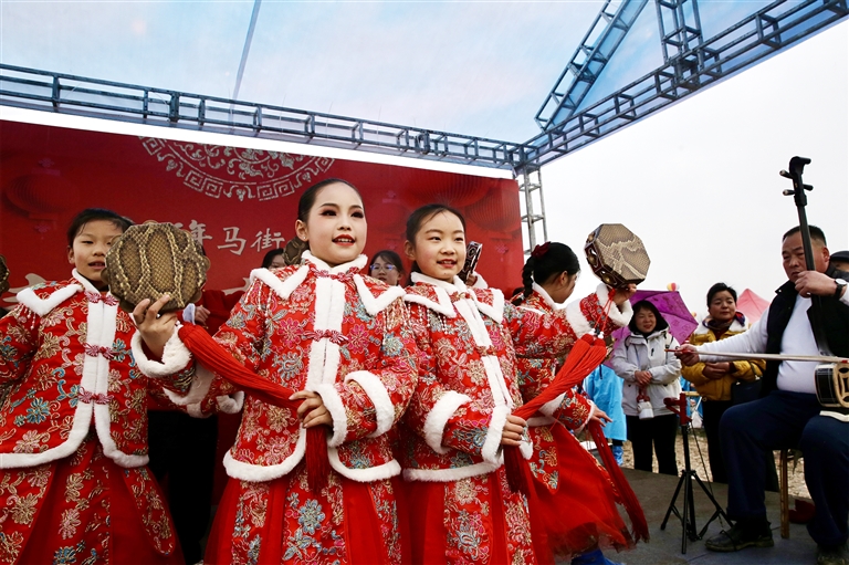 3月1日,农历正月十三,备受瞩目的马街书会正会在宝丰县马街村精彩开幕。图为学生在书会上表演。本报全媒体记者 王铮 摄