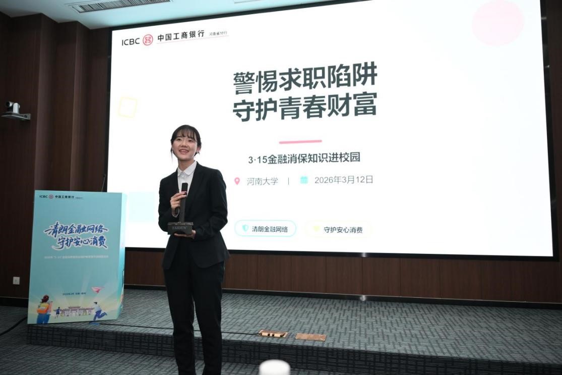 3月12日,由国家金融监督管理总局河南监管局、河南省银行业协会指导,工行河南省分行、工行郑州分行在河南大学龙子湖校区举办“3.15”金融消费者权益保护教育宣传进校园活动。工作人员在校内布放展台,开设知识讲座,并设置“消保盲盒”互动区,吸引了众多大学生驻足参与。同学们通过拆盲盒了解金融消保知识、参与互动问答。内容涵盖“识别校园贷陷阱”“防范网络刷单诈骗”“保护个人征信”等热点话题。